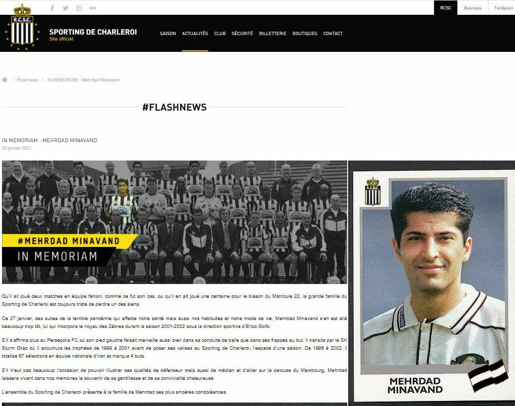 او در فصل ۲۰۰۱/۲ در شارلوای تحت هدایت اِنزو چیفو بازی میکرد. اگرچه مهرداد فرصت زیادی نداشت تا ویژگیهای خود را نه به عنوان یک مدافع بلکه به عنوان یک وینگر و هافبک در زمین «مامبورگ» (استادیوم سابق شارلوا) نشان دهد، اما او به خاطر مهربانی و صمیمی بودن در خاطرات ما به یادگار مانده است. تمام اعضای باشگاه شارلوا عمیقا به خانواده مهرداد تسلیت میگویند. [ یکشنبه دوازدهم بهمن ۱۳۹۹ ] [ 0:57 ] [ رادمهر ]
